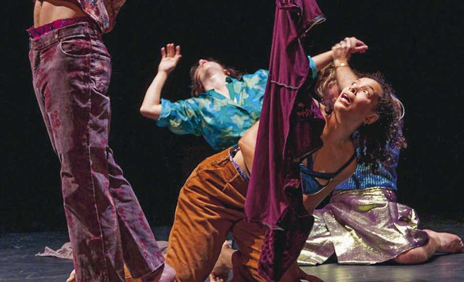 En gestes et en paroles, Arthur Perole fait jaillir les relations de quatre interprètes à leurs corps, oscillant entre partage intime et joie festive.