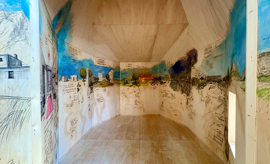 Le résultat ? Une fresque collective qui tapisse les parois de la cabane. Une géographie de l'intime, un atlas des souvenirs que l'exil n'a pas réussi à effacer, des paroles et des histoires à entendre.
