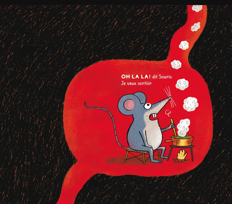 Sous ses airs de farce animalière, ce mini conte joue avec la peur et le rire, l’attente et la répétition, un ressort classique des histoires à lire à voix haute, qui déclenche à coup sûr éclats de rire et cris complices.