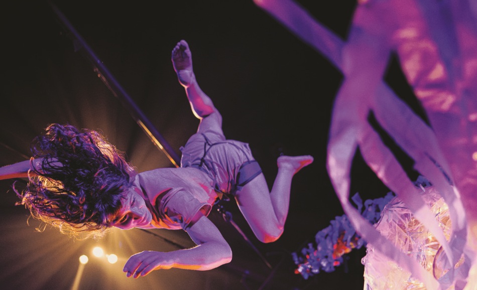 Guidés par un narrateur manipulateur chimérique, deux acrobates au sol et en aérien nous entraînent dans un voyage initiatique à travers des paysages fantastiques, où se questionnent l’invisible, notre lien aux autres, et ce qu’il restera après notre passage.