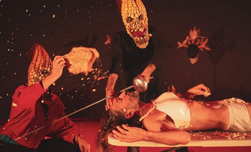 Gonflés comme des grains de pop-corn au bord de l’apoplexie, Annabelle Chambon et Cédric Charron démontent joyeusement le système de la mondialisation et de la surconsommation à grands coups de pop culture et d’électro-punk. Un spectacle fait de chair et de son qui changera à tout jamais votre regard sur le maïs.