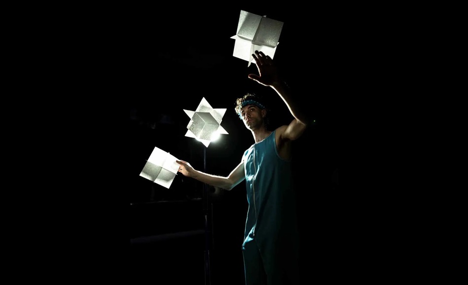 Des objets, des formes, des couleurs. Pas d’histoire, mais une composition qui explore la relation humain-objet à travers un jonglage abstrait.