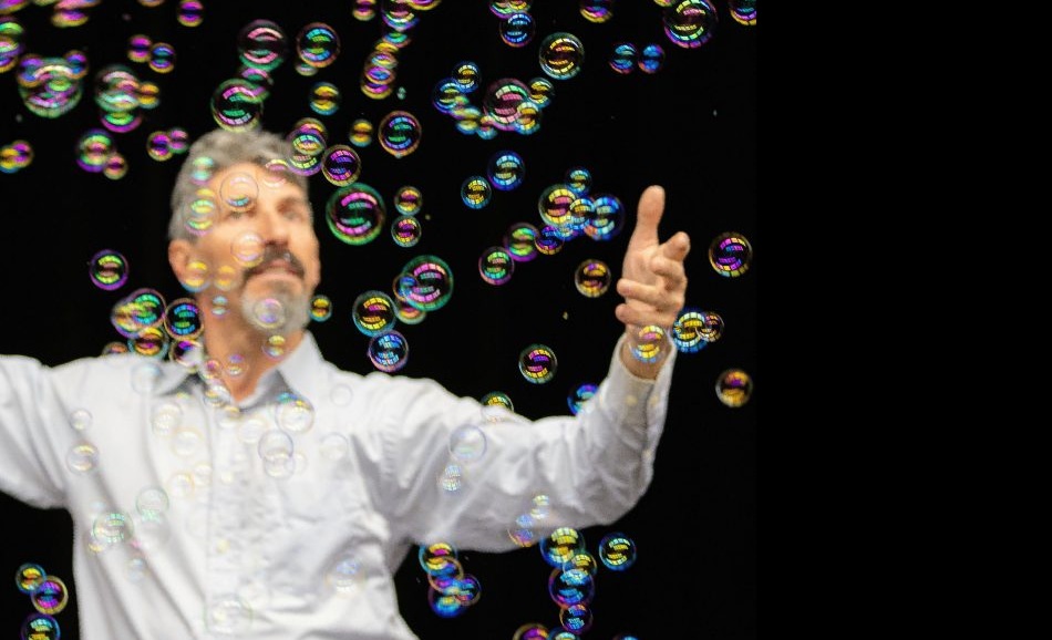 Que nous raconterait une bulle de savon si elle avait tout le temps devant elle ? Que nous dirait-elle des forces qui la poussent à s’envoler ou au contraire à se poser puis à éclater ? Un conférencier spécialiste des bulles de savon nous dévoile leur secret de fabrication et leurs mystères. De digressions en divagations, il explique à sa façon les lois physiques qui régissent l’univers ainsi que la définition des matières dîtes molles, exemples à l’appui ! Une conférence dansée et chantée qui nous rappelle que la beauté se cache dans les petits riens, un geste, un poème, une comptine ou encore le bruit du vent qui emporte la bulle de savon.