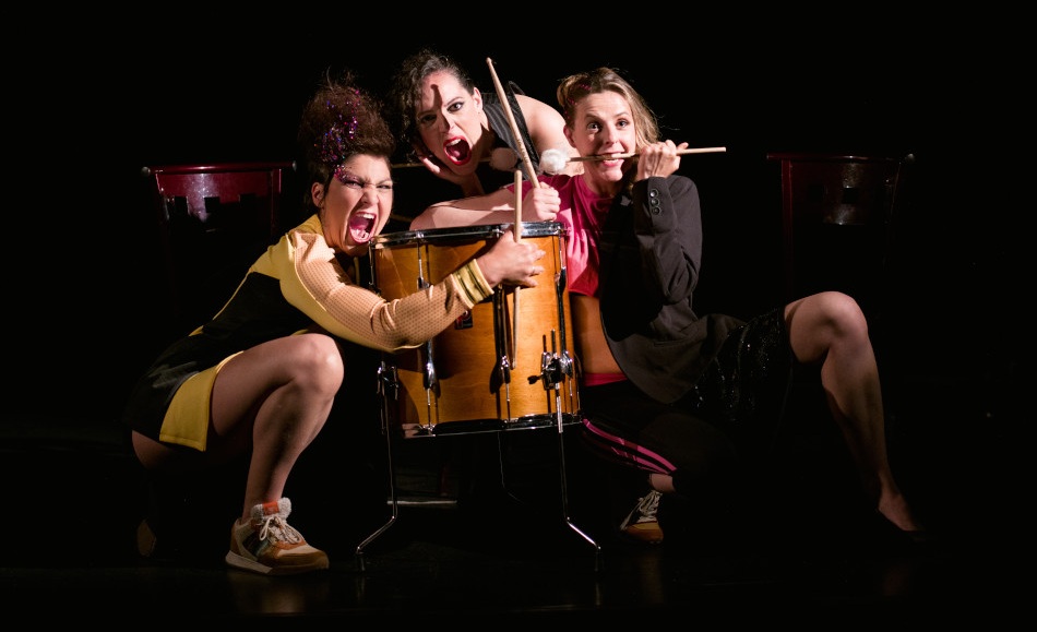 Sur scène, trois femmes, emportées dans le tourbillon de leur vie à mille à l’heure, nous invitent à contempler notre propre horloge intérieure, notre rapport au temps, à écouter nos souffles et nos silences. Ce spectacle part de l’histoire de ces 3 femmes et touche chacun.e de nous à travers le temps qui passe, le temps que l’on prend, le temps que l’on perd, le temps que l’on tue, le temps suspendu. Au centre, une batterie jouée à 6 mains, des rythmiques chorégraphiées, un looper beatboxé, des costumes arrachés, des lumières déchaînées, des artistes à toute berzingue, pied au plancher, au quart de tour, plein pot, stop ! Ce spectacle familial percussif et percutant, interroge notre rapport au temps à travers des textes et des chansons originales.