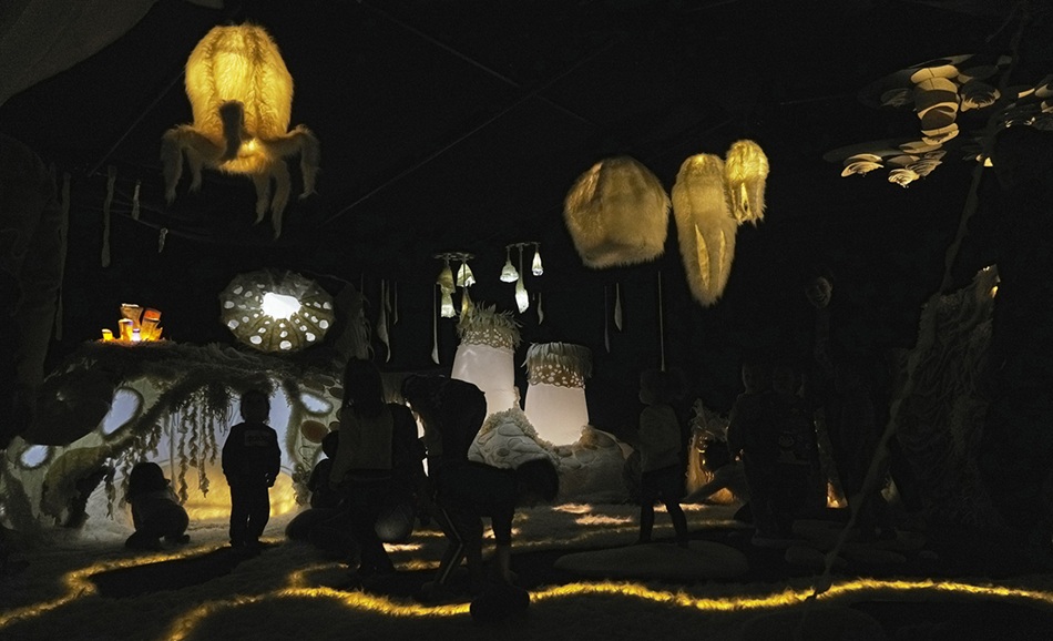 Doux et feutré, à mi-chemin entre le parcours sensoriel et le théâtre visuel, (é)Mouvoir est une invitation à l’adresse des tout-petits à ressentir le rythme d’un monde qui, grâce à la manipulation d’objets, lentement se transforme.